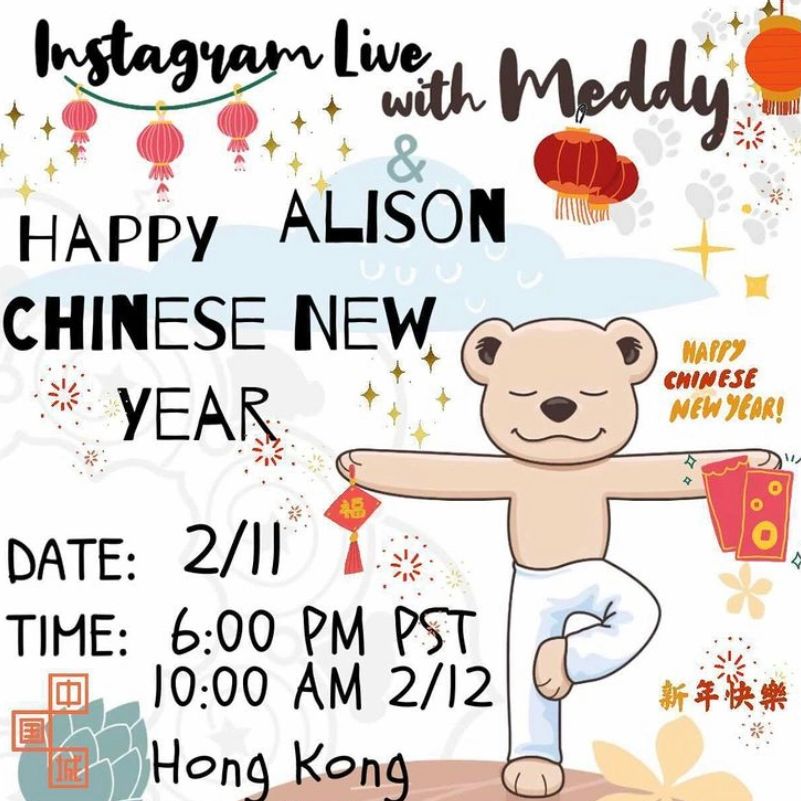 My second Instagram Live kids' yoga class on the official Meddy Teddy Instagram account on 12th February 2021, this time with a Lunar New Year theme! My class is saved on the @meddyteddy IGTV. If you would like to watch it, click below! The class is free.